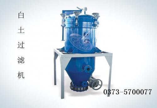 目前該設備已成功應用于各行業固液分離中白土助濾劑的過濾。該設備是我公司(新鄉高服機械)結合原有板框式過濾機的基礎,引進荷蘭技術,研發出該設備;白土過濾機具有操作簡便,占地面積小,全密閉操作,對物料無污染,機械振動泄渣,降低工人勞動強度,內置五層不銹鋼濾網過濾,耐用,過濾葉片可以使用很多年,無需經常更換濾布濾紙,降低過濾成本,是過濾行業中的設備。白土過濾機——因其主要過濾各種液體中白土助濾劑,因此得名白土過濾機,此設備主要由罐體、過濾葉片、支撐桿、集油管、排渣碟閥、振動器、液壓千斤頂和罐蓋鎖緊裝置等組成。罐體是帶有碟蓋和錐底的圓筒體,過濾葉片垂直安置在支撐桿和集油管間,通過偏心的壓桿壓緊,使其各葉片的出油口與集油管密封銜接。